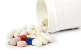 Zdjęcie "Witaminy, lek w białej i czerwonej kapsułce w butelce wyizolowanej na białym tle." może być wykorzystywane do celów osobistych i komercyjnych zgodnie z warunkami zakupionej licencji Royalty-free. Obraz jest dostępny do pobrania w jakości wysokiej rozdzielczości do 5760x3840.