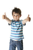 Zdjęcie "mały chłopiec Wyświetlono kciuk w" może być wykorzystywane do celów osobistych i komercyjnych zgodnie z warunkami zakupionej licencji Royalty-free. Obraz jest dostępny do pobrania w jakości wysokiej rozdzielczości do 5760x3840.