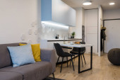 Zdjęcie "Wnętrze salonu w nowoczesnym apartamencie" może być wykorzystywane do celów osobistych i komercyjnych zgodnie z warunkami zakupionej licencji Royalty-free. Obraz jest dostępny do pobrania w jakości wysokiej rozdzielczości do 5760x3840.