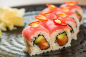 organiczne sushi roll z tempura Krewetka w restauracji