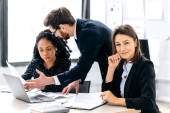 Zdjęcie "Sukces kobiety biznesu przedstawić własny projekt na spotkaniu briefing. Piękna afrykańska szefowa rozmawia z kolegami, omawia plany i strategie firmy, uśmiecha się" może być wykorzystywane do celów osobistych i komercyjnych zgodnie z warunkami zakupionej licencji Royalty-free. Obraz jest dostępny do pobrania w jakości wysokiej rozdzielczości do 5760x3840.