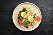 Zdjęcie "świeża sałatka z gotowanym jajkiem i awokado" może być wykorzystywane do celów osobistych i komercyjnych zgodnie z warunkami zakupionej licencji Royalty-free. Obraz jest dostępny do pobrania w jakości wysokiej rozdzielczości do 5760x3840.
