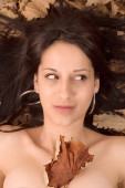 dziewczyna leżąc na Jesienne liście.