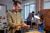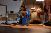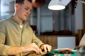 złotnik przycinający biżuterię przy użyciu narzędzi złotników