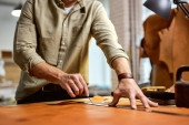 Zdjęcie "profesjonalny szewc mierzący but z taśmą pomiarową w warsztacie" może być wykorzystywane do celów osobistych i komercyjnych zgodnie z warunkami zakupionej licencji Royalty-free. Obraz jest dostępny do pobrania w jakości wysokiej rozdzielczości do 5760x3840.