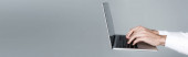 Zdjęcie "Cyborg w cyfrowych soczewkach do oczu i słuchawkach z laptopem w powietrzu izolowanym na szarym, banerze" może być wykorzystywane do celów osobistych i komercyjnych zgodnie z warunkami zakupionej licencji Royalty-free. Obraz jest dostępny do pobrania w jakości wysokiej rozdzielczości do 5760x3840.