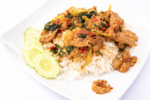 Smażony kurczak z bazylią, popularne tajskie jedzenie