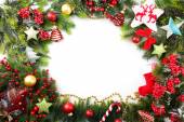 Choinka ozdoba wianek. na białym tle nad biały deseń