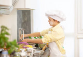 Zdjęcie "Little cute boy przebrany za kucharza w kuchni" może być wykorzystywane do celów osobistych i komercyjnych zgodnie z warunkami zakupionej licencji Royalty-free. Obraz jest dostępny do pobrania w jakości wysokiej rozdzielczości do 5760x3840.