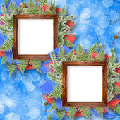 drewniane ramki na zdjęcie z storczyki niebieski i zielony paproci
