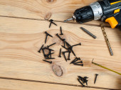 śruby i kołki gwoździe na tle śrubokrętu, wybór różnych śrub i kołków do różnych materiałów ścian i powierzchni