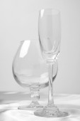 Szkło szampana na białej powierzchni. Szkło z cieniem na białym stole.