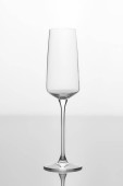 Szkło szampana na białej powierzchni. Szkło z cieniem na białym stole.