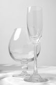 Szklanka wina leży na białym tle. Szkło z twardym cieniem w kolorze monochromatycznym