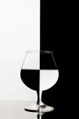 Szklanka wina leży na białym tle. Szkło z twardym cieniem w kolorze monochromatycznym