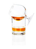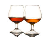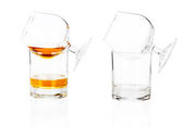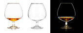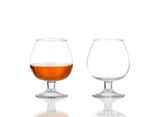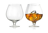 dwie szklanki brandy (pusty i alkoholem) na białym tle biały ba
