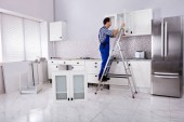 Ulepszenie domu. Narzędzie stolarskie do układania nowej podłogi z drewna liściastego