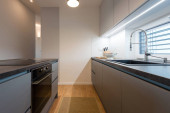 Zdjęcie "Wnętrze nowoczesnej kuchni z wbudowanymi urządzeniami" może być wykorzystywane do celów osobistych i komercyjnych zgodnie z warunkami zakupionej licencji Royalty-free. Obraz jest dostępny do pobrania w jakości wysokiej rozdzielczości do 5760x3840.