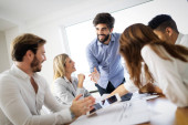 Przedsiębiorcy i przedsiębiorcy współpracujący ze sobą, burza mózgów w biurze