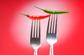 ostra papryka na widelec z kolorem tła