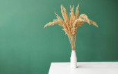 Zdjęcie "Martwa natura bukietu suszonych kwiatów w szklanej butelce na drewnianym stole. Miejsce na tekst lub reklamę. Widok z góry." może być wykorzystywane do celów osobistych i komercyjnych zgodnie z warunkami zakupionej licencji Royalty-free. Obraz jest dostępny do pobrania w jakości wysokiej rozdzielczości do 5760x3840.