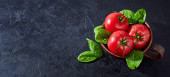 Zdjęcie "Świeże pomidory winogronowe z sałatką Liście na czarnym tle kamienia. Wegańskie warzywa dietetyczne jedzenie. Zioło, pomidory, koncepcja gotowania." może być wykorzystywane do celów osobistych i komercyjnych zgodnie z warunkami zakupionej licencji Royalty-free. Obraz jest dostępny do pobrania w jakości wysokiej rozdzielczości do 5760x3840.