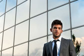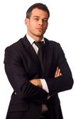 młody biznesmen szuka poważnego na białym tle na białym tle