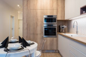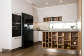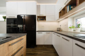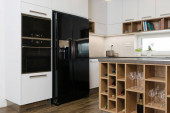 Wnętrze nowoczesnej kuchni z wbudowanymi urządzeniami