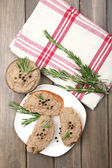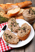 świeże pasztet z chlebem na drewnianym stole