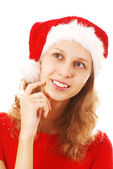 piękna młoda kobieta w czerwonym kapeluszu santa