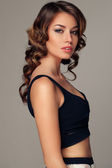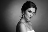 Piękna sexy dziewczyna z czerwonymi ustami. wyzywający makijaż. kobieta luksus. brunetka portret moda na białym tle. Wspaniała kobieta twarzy. długie włosy