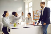 Rozwój biznesu, praca zespołowa, koncepcja wielonarodowej grupy roboczej