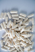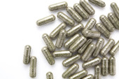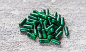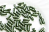 leczenie i profilaktyka chorób, spirulina, kapsułki z zielonym proszkiem na białym