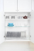 Otwarta szafa kuchnia z różnych czystych naczyń
