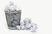 koszu na śmieci z papieru odpadów na białym tle na biały