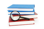 lupę stos książek