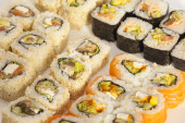 Zdjęcie "rolki sushi różne" może być wykorzystywane do celów osobistych i komercyjnych zgodnie z warunkami zakupionej licencji Royalty-free. Obraz jest dostępny do pobrania w jakości wysokiej rozdzielczości do 5760x3840.