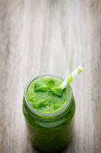 Rucolahsmoothie, na szarym tle.