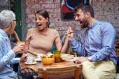 Zdjęcie "Młodzi biznesmeni cieszą się biznesowym lunchem w miłej atmosferze w restauracji. Biznes, restauracja, obiad" może być wykorzystywane do celów osobistych i komercyjnych zgodnie z warunkami zakupionej licencji Royalty-free. Obraz jest dostępny do pobrania w jakości wysokiej rozdzielczości do 5760x3840.