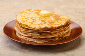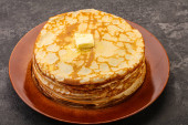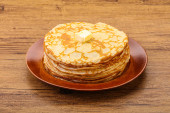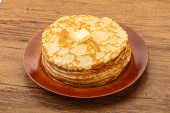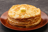 Zdjęcie "Stos rosyjskich tradycyjnych naleśników z masłem" może być wykorzystywane do celów osobistych i komercyjnych zgodnie z warunkami zakupionej licencji Royalty-free. Obraz jest dostępny do pobrania w jakości wysokiej rozdzielczości do 5760x3840.