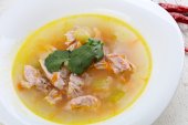 Zupa grochowa z wędzonym mięsem i warzywami