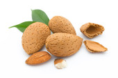 Grupa orzechów migdałowych. Izolacja na białym tle.