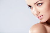 piękna kobieta połowę twarzy. koncepcja produktów do pielęgnacji skóry