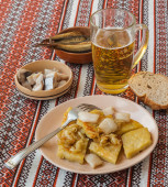 Owsianka ssaków lub ssaków z żółtej mąki kukurydzianej lub kasz, tradycyjna w Rumunii, Mołdawii i zachodniej Ukrainie. Układy płaskie