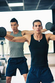 Kettlebell i ważoną piłką Ćwiczenie siłownia mężczyzn