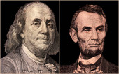 Portret prezydentów USA Benjamina Franklina i George 'a Washingtona.
