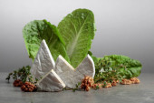 Zdjęcie "Świeży ser Brie z sałatą i orzechami włoskimi. Przestrzeń kopiowania." może być wykorzystywane do celów osobistych i komercyjnych zgodnie z warunkami zakupionej licencji Royalty-free. Obraz jest dostępny do pobrania w jakości wysokiej rozdzielczości do 5760x3840.