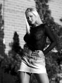 ekscytujących młodych kobiet w czarna koszula i jeansy