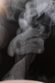 Para wyrasta z kubka. Odparowywanie cieczy. Ciemne zdjęcie.