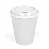 Biały kubek papieru z pokrywą, szczegółowy wektor ilustracji
